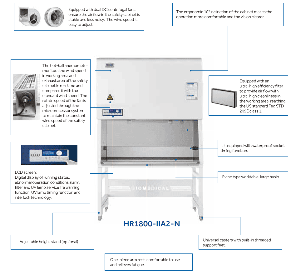 İlaç, tıbbi ve sağlık endüstrileri, üniversite ve kolejlerin bilimsel araştırma laboratuvarları ve diğer ilgili alanlar için uygun profesyonel hava temizleme ekipmanları. 100 ila 230V, 50/60Hz arasında tüm ülkelerde ve bölgelerde mevcuttur Çift DC fanlar Çift rüzgar hızı sensörleri Çift Ultra Yüksek Verimli Filtreler (ULPA) Tek parça kaynaklı kabin yapısı