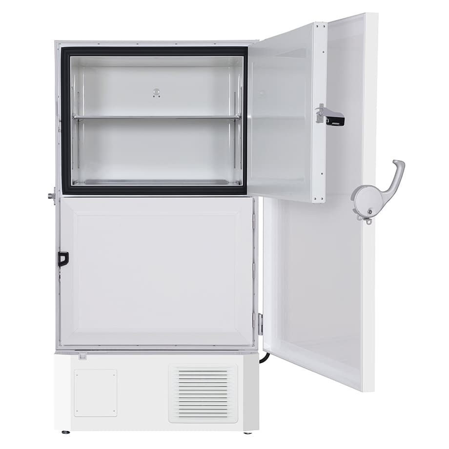 The MDF-DU700ZH-PE FrostLess -86°C Upright Freezer features reduced ice formation on the inner doors. It provides optimum sample storage capacity in a compact footprint combined with natural refrigerants to minimise energy consumption, reduce environmental impact and save money. FrostLess Technology A new thermal insulation design for the inner doors suppresses ice formation on the inner door surface, resulting in frequent manual labour and defrosting time reduced by 60%. Inventer Compressor While traditional freezers use single speed compressors that cycle on and off, the MDF-DU700ZH-PE freezer features an inverter compressor that can operate at different speeds to maximise cooling performance under different conditions. Combined with hydrocarbon refrigerants, these compressors provide the most efficient energy use and reduced heat output.