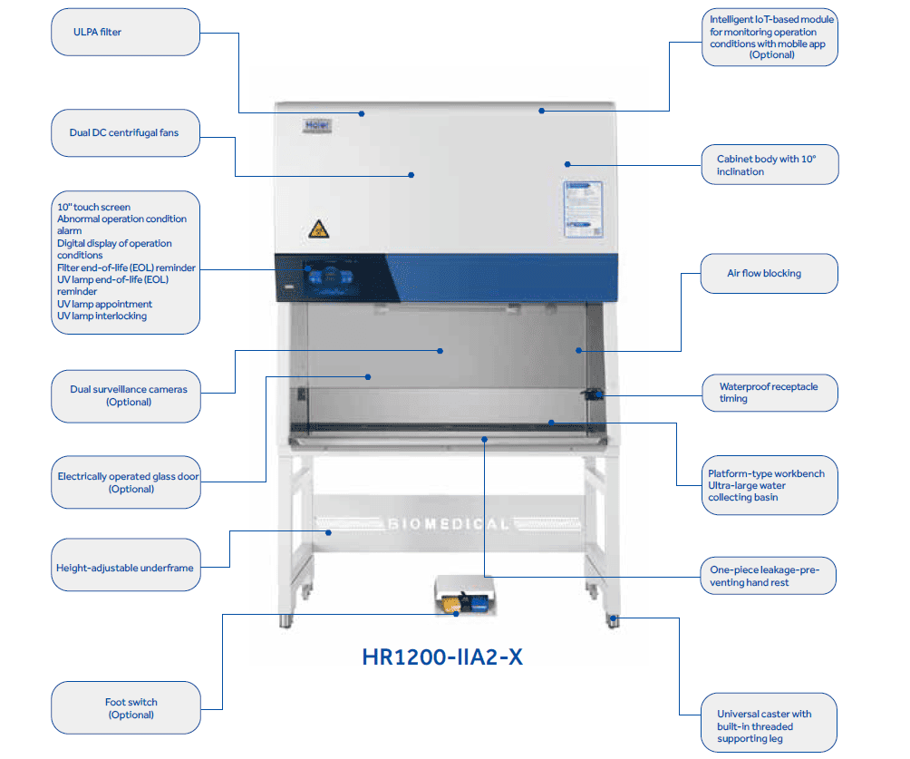 X serisi standart Sınıf II mikrobiyolojik güvenlik kabinleri temel hücre biyolojisi, mikrobiyoloji, biyomedikal, biyogüvenlik laboratuvarları ve diğer laboratuvarlar için uygundur. Biyogüvenlik için en temel koruma ve izolasyon ekipmanıdır. Dual: SMI basınç sensörleri, hafif hava akışı hız sensörleri, EBM DC fanlar, ULPA filtreler, ışıklar Akıllı sabit hava hızı fonksiyonu Hava akışı engelleme patentli teknoloji HEPA filtre hizmet ömrü uyarı fonksiyonu UV lamba hizmet ömrü uyarısı ve tek dokunuşlu zamanlayıcı fonksiyonu