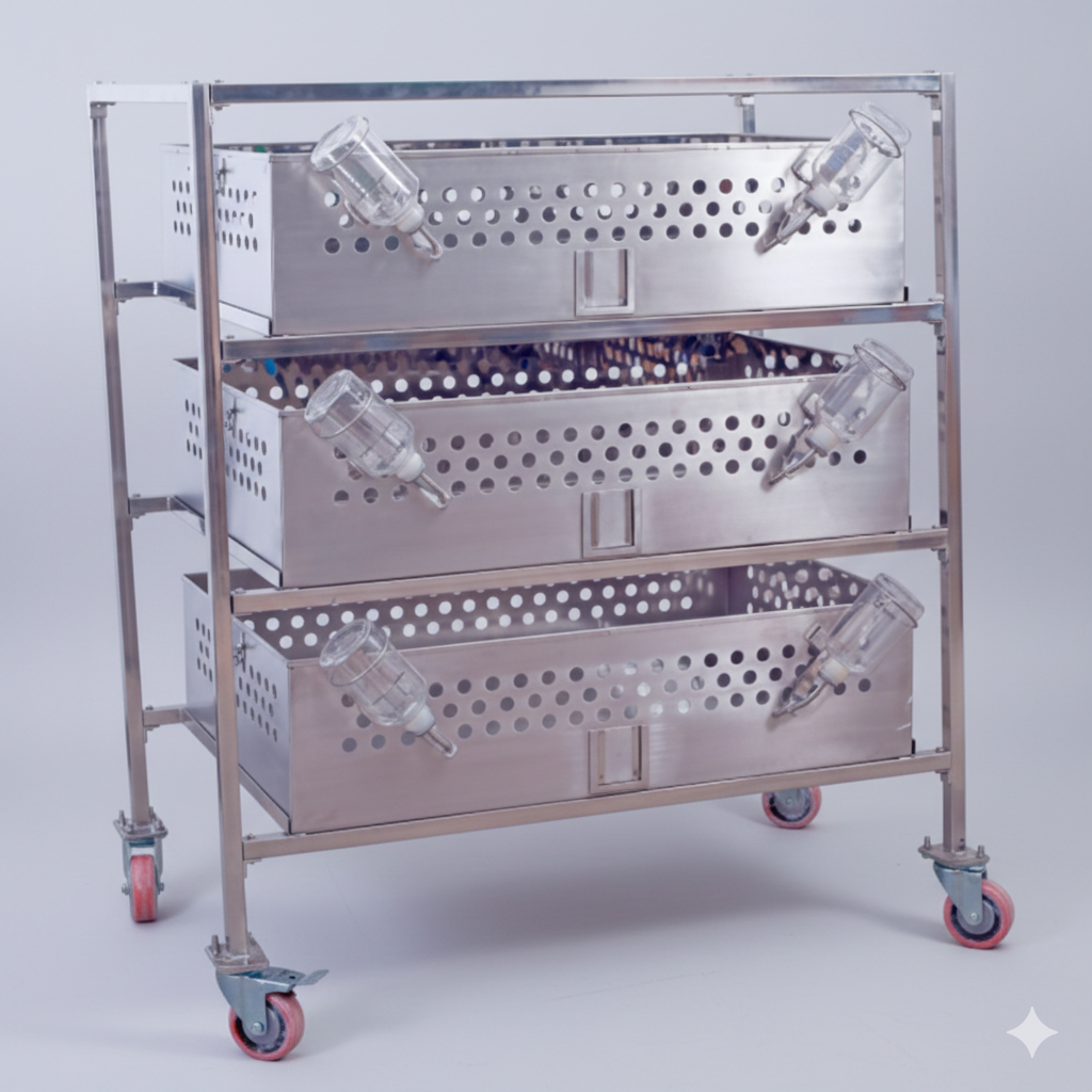 Kobay (Guinea Pig) Tavaları ve Taşıma Arabası, laboratuvar kobayları için geniş alanlı, yüksek dayanıklılığa sahip ve hijyenik bir barınma çözümüdür.