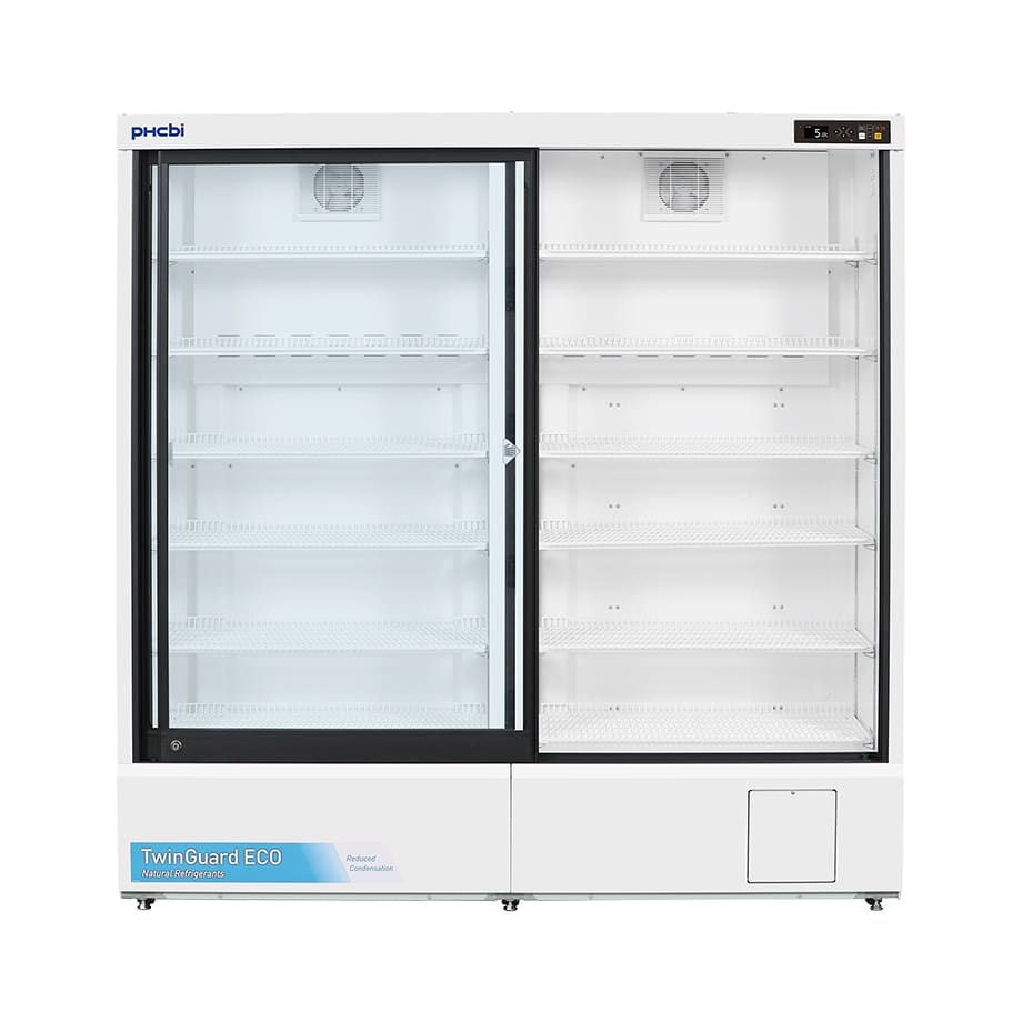Sürgülü Kapılı Twinguard İlaç Dolabı Sürgülü kapılı MPR-S1201XH-PE Twinguard İlaç Dolabımız, yüksek güvenilirlikli sıcaklık kontrolü sayesinde numuneleri, reaktifleri ve ilaçları mükemmel şekilde korur. Doğal HC soğutucu akışkanların inverter kontrollü kompresörlerle birlikte kullanımı, mevcut modellere kıyasla güç tüketimini yaklaşık %77 oranında azaltır. Üstün Numune Koruması Tek bir ünite, iki bağımsız soğutma devresi içerir. Bir devrede sorun yaşanırsa, diğer devre hazne içi sıcaklığı SV 5°C ± 3°C'de tutmaya devam eder. Çift emniyetli devreler, depolanan önemli ürünlerin daha güvenli bir şekilde korunmasını sağlar. Geliştirilmiş Sürdürülebilirlik Doğal HC soğutucu akışkanlar, inverter kontrollü kompresörler, yeni Döngülü Buz Çözme sistemi ve geliştirilmiş sürgülü cam kapı tasarımı, sıcaklık yönetimini iyileştirmek ve enerji verimliliğini artırmak için bir araya gelir. Kullanıcı Dostu Tasarım Ergonomik tasarımı, geniş çerçeveli pencerelerden saklanan eşyaların net bir şekilde görülmesini sağlar. İnce profili sayesinde kolayca erişilebilir ve kendiliğinden kapanan sürgülü kapıları sayesinde dar alanlar için idealdir. Çevre Dostu ve Enerji Tasarruflu 2 Kompresör, ideal çalışma düzenine "karar vererek" AÇIK/KAPALI modunda çalışır. A ve B kompresörleri, güç tüketimini en aza indirmek için ideal çalışma düzenlerinde kontrol edilir.
